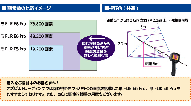 形 FLIR E5 Pro/E6 Pro/E8 Pro の各仕様をご確認いただけます。