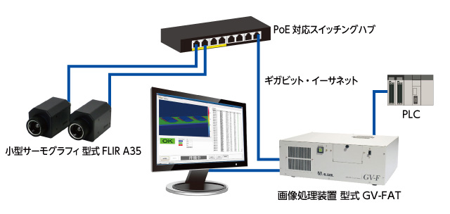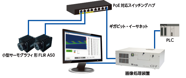 サーモグラフィ良否判定システムは、カメラ部に小型サーモグラフィを採用し、温度情報を用いた画期的な検査システムです。