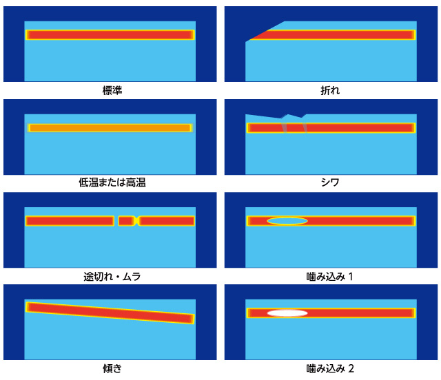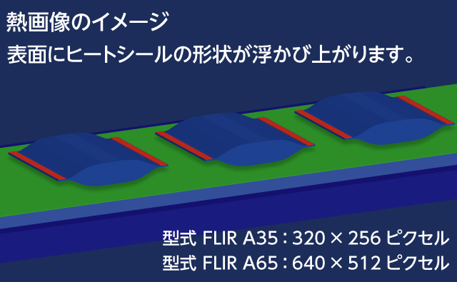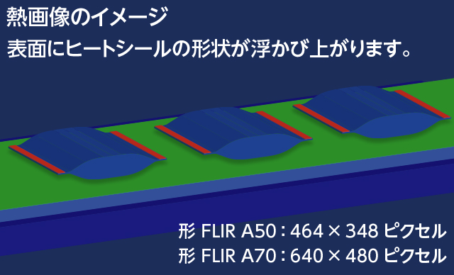 小型サーモグラフィと画像処理装置を使 用することにより、様々なヒートシールの不具合検査にご活用いただけます。
