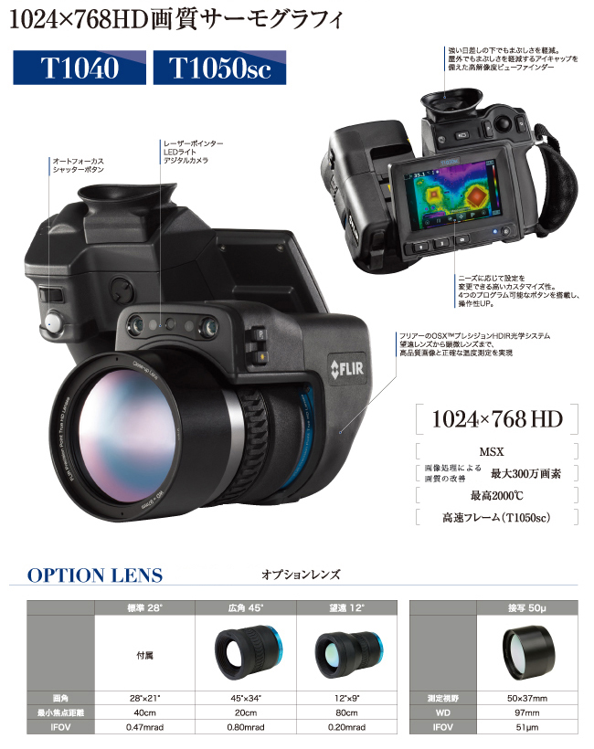 高精細画質サーモグラフィカメラ形 FLIR T1010/T1040/T1050sc