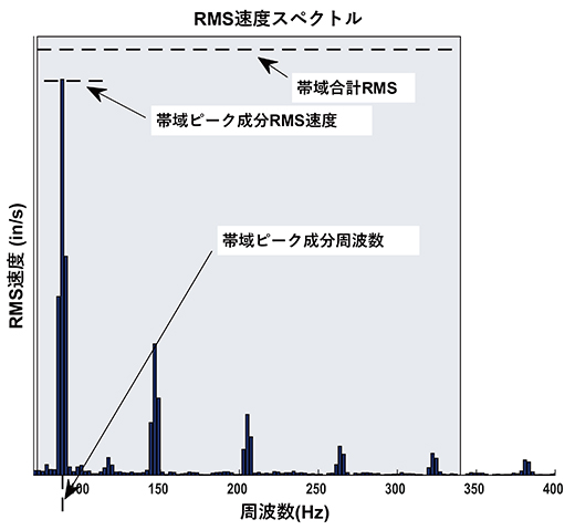 帯域内で最大のRMS値をもつスペクトル成分として定義されるピークスペクトル成分のRMS