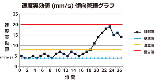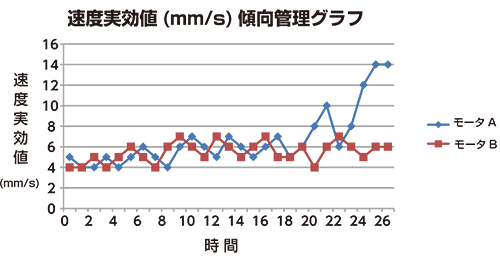 同じ機械の同一の測定点の振動値を比較して判定する方法