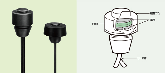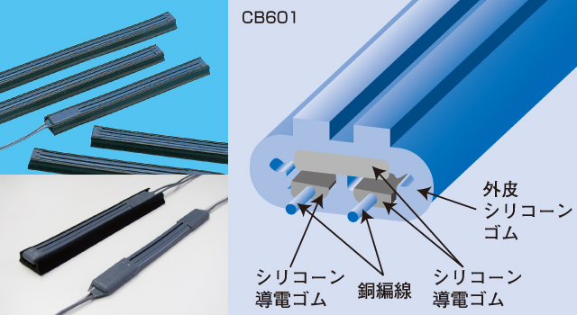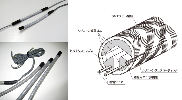 ケーブルスイッチは、スイッチ素子が導電ゴムと導電ワイヤーの組み合わせで構成されています。圧力を加えたとき、電気抵抗が(∞から)Ω単位まで一気に変化するA接点のスイッチです。導電ワイヤーを内蔵することで、長手方向の抵抗値の増大が少なく、フェイルセーフ機能を持たせることができ、安全用途への使用が可能です。また、独自の内部構造により、作動力・耐衝撃性・繰返し耐久性・柔軟性に優れた線状の感圧スイッチです。