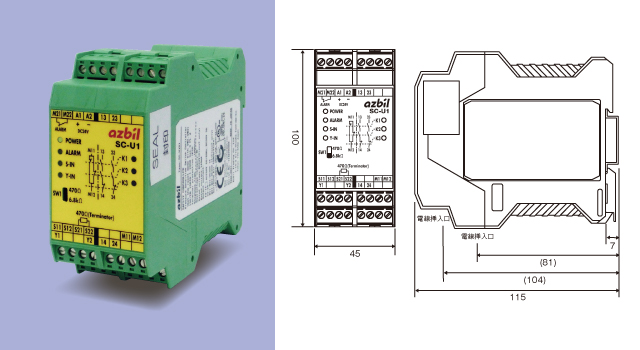 補助出力と断線警報出力を持ち、遠隔での状態確認も行えます。