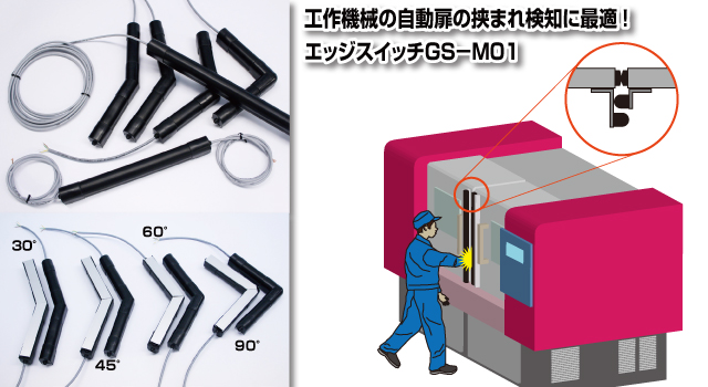 機械による人の挟まれを防止するセーフティエッジシリーズに、新たに欧州安全規格に適合したセーフティエッジスイッチ形 GS-M01とセーフティコントローラ形 SC-U1D1を開発、2012年10月より販売を開始し多くの納入実績があります。セーフティエッジスイッチは、作業現場における労働災害で多い挟まれ事故に対し、人と機械が接触する可能性のある扉やテーブルなどの可動部に取付け、挟まれる前に人が接触したことを感圧センサが検知し、セーフティコントローラが機械設備を停止させます。例えば、作業者の腕などが工作機械の自動扉に挟まれないようにセーフティエッジを取付けることにより、作業者が安心して作業をすることができます。国内を含め世界的に機械安全に対するニーズが高まっている中で、セーフティエッジも安全規格の取得が求められています。弊社では2012年に日本企業で初めて欧州安全規格EN1760-2型式に適合したセーフティエッジを開発、製品化しました。これにより、欧州への輸出に対応することができます。