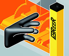 指または手 | オペレータが危険箇所近くで作業する必要がある場合に検知できること。バリアの分解能は、14 ∼ 40mm の間にすること。 | 危険箇所と保護対象領域の距離を上から縮めれば、寸法を縮小可能。 機械への資材の積降時間の短縮。 オペレータの疲労が減り、生産性が向上。 |