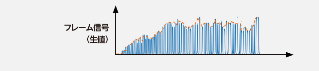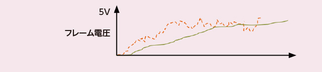 フレーム電圧は、従来のバーナコントローラの火炎信号値で、フレームレベルを積分し、さらに平滑したデータです。