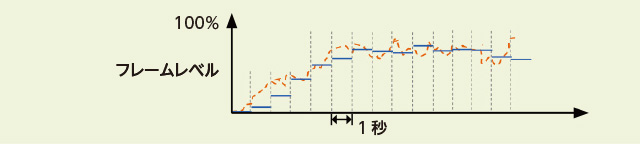 フレームレベルは、1秒間あたりの放電カウント値を積算し、0~100%の レベルに変換したものです。