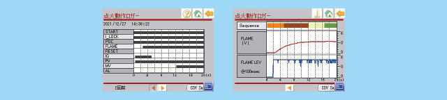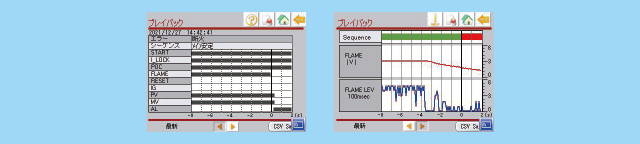- 点火時、断火時の機器動作と火炎状態を記録でき、原因究明に活用可能