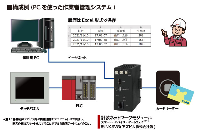 既設のイーサネットポート装備のタッチパネル※1にカードリーダーを追加することにより、簡単に管理システムを構築できます。