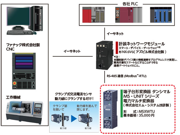 アズビル株式会社製 計装ネットワークモジュール スマート・デバイス・ゲートウェイ*注を使用する事により容易に CNC、各社 PLC とのデータ送受信も可能!